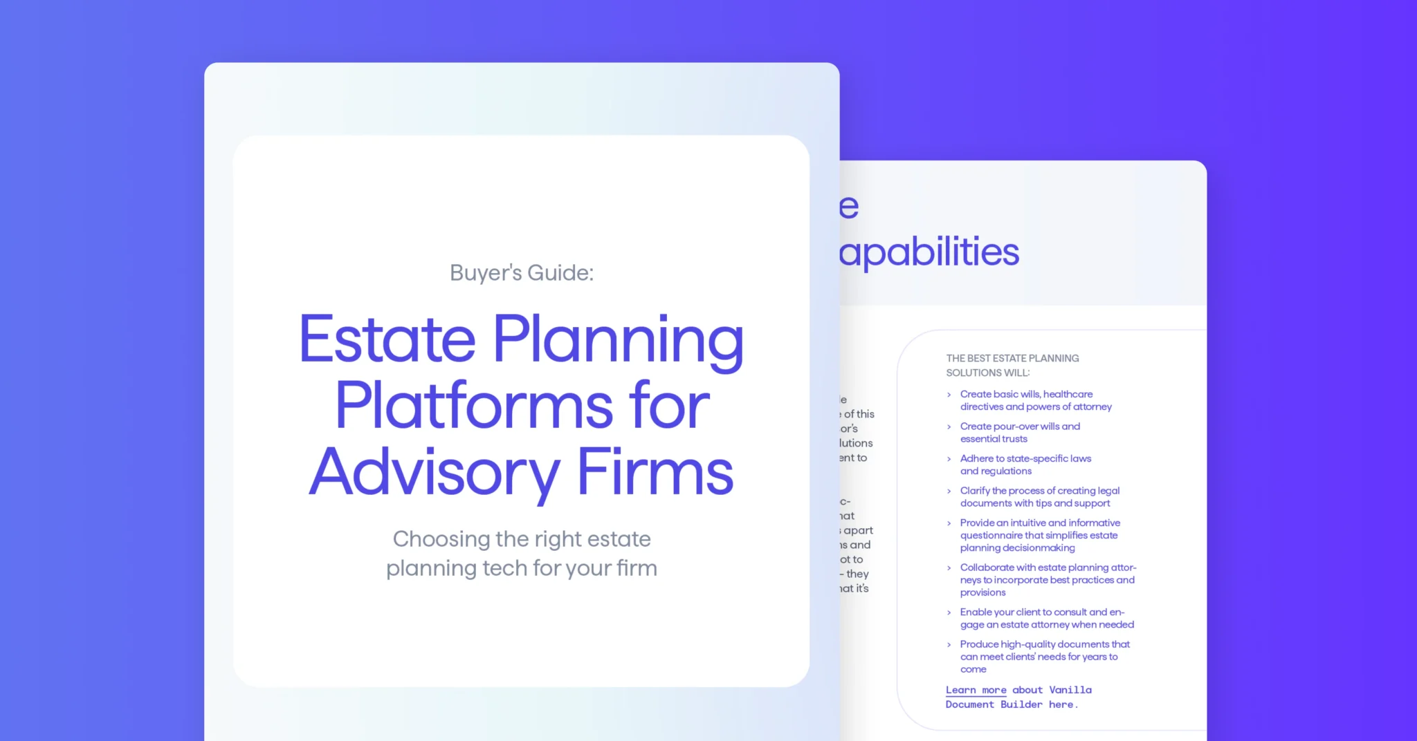 By nature, the practice of estate planning has a level of seriousness and substantiality that few other advisor-client conversations will ever reach. When you bring technology into that process, you want to make sure it reflects the importance of the topic at hand. Choosing an estate planning software that brings the appropriate credibility and accuracy is no small task, and it’s easy to get lost in the details when comparing solutions. To help cut through the noise, we built the Buyer’s Guide to Estate Planning Platforms for Advisory Firms, which walks through the criteria to consider when choosing a solution...