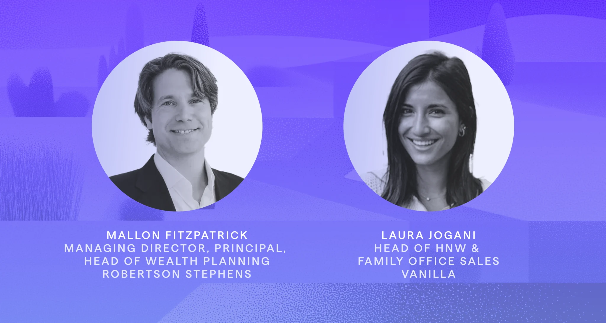 In a crowded marketplace of advisory firms, going the extra mile for clients can be the difference between multi-generational retention and losing out to competitors. At Robertson Stephens, Mallon FitzPatrick is prioritizing client success and satisfaction through white glove estate planning services supported by Vanilla. Join us to hear how Mallon, who was recently named a Finalist for Thought Leader of the Year in the ThinkAdvisor Luminaries, is driving long-term success for Robertson Stephens through strategic differentiation and client centricity. Together with Vanilla’s Laura Jogani, Mallon will discuss: The framework behind Robertson Stephens’ differentiated approach to planning and what sets...