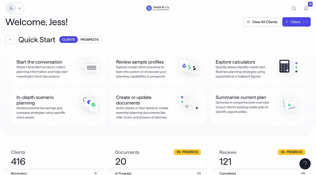 This month’s releases reflect our commitment to removing friction from your daily workflows while giving you greater control over how you work. Whether it’s navigating the platform more efficiently, customizing estate visualizations for specific conversations, or eliminating manual data entry with robust integrations, these enhancements help you focus on what matters: delivering exceptional estate planning experiences to your clients.