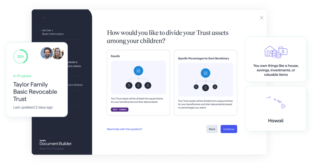“Vanilla makes it easy for my clients to create estate documents while giving me a complete platform to manage ongoing estate advisor conversations.”