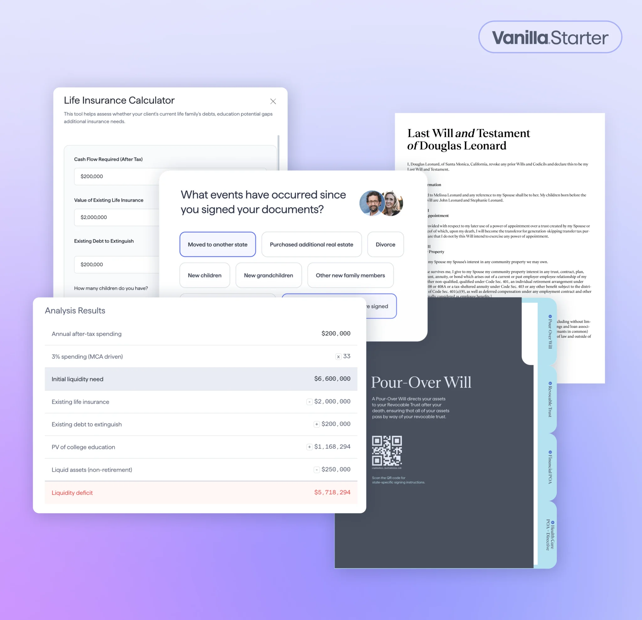 New offering brings institutional-grade estate planning capabilities to boutique advisory firms at accessible pricing BELLEVUE, Wash.--Vanilla, the leading estate planning technology platform trusted by several of the country’s largest wealth management firms, today announced the opening of the waitlist for Vanilla Starter, a groundbreaking solution designed to make professional estate planning services accessible for boutique RIA firms. Built on the same proven, institutional-grade technology that serves ultra-high-net-worth clients, Vanilla Starter will launch with pricing starting at $99 per month. Solo practices and small RIA firms have long faced a critical challenge: wanting to offer estate planning services in-house but lacking...