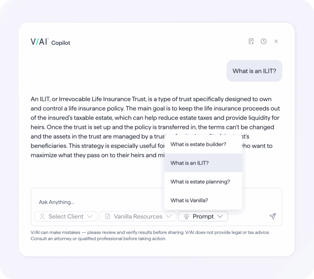 “We think that Vanilla’s accuracy is the best we’ve seen. The reports are aesthetically pleasing, and especially the comprehensive estate planning presentation—clients and prospects love it.”
